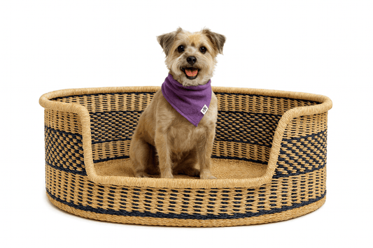 Give your beloved dog the ultimate comfort with our authentic African woven pet beds. Lovingly handcrafted in Ghana using traditional techniques, these durable and cozy beds create a perfect sanctuary where your canine companion can rest, relax, and feel truly at home.
